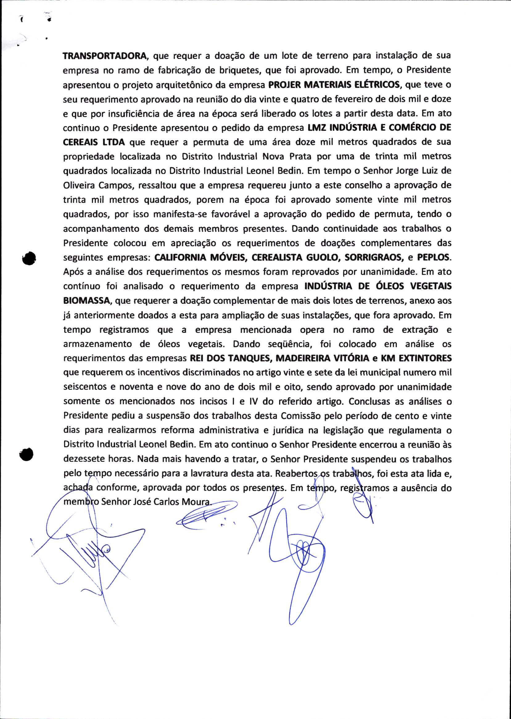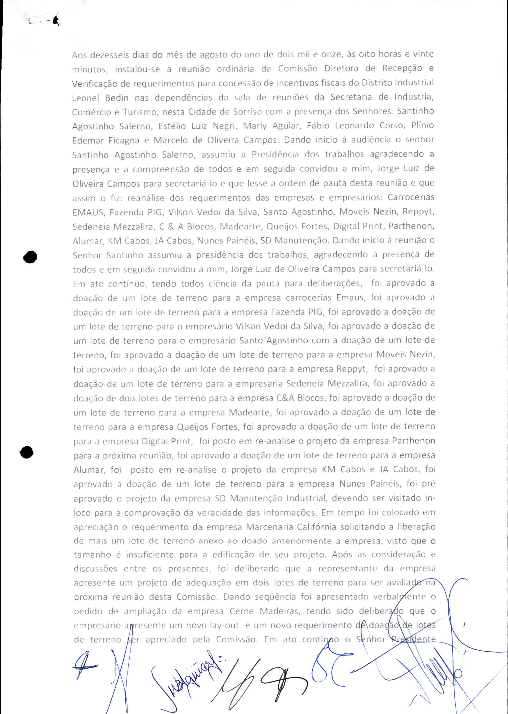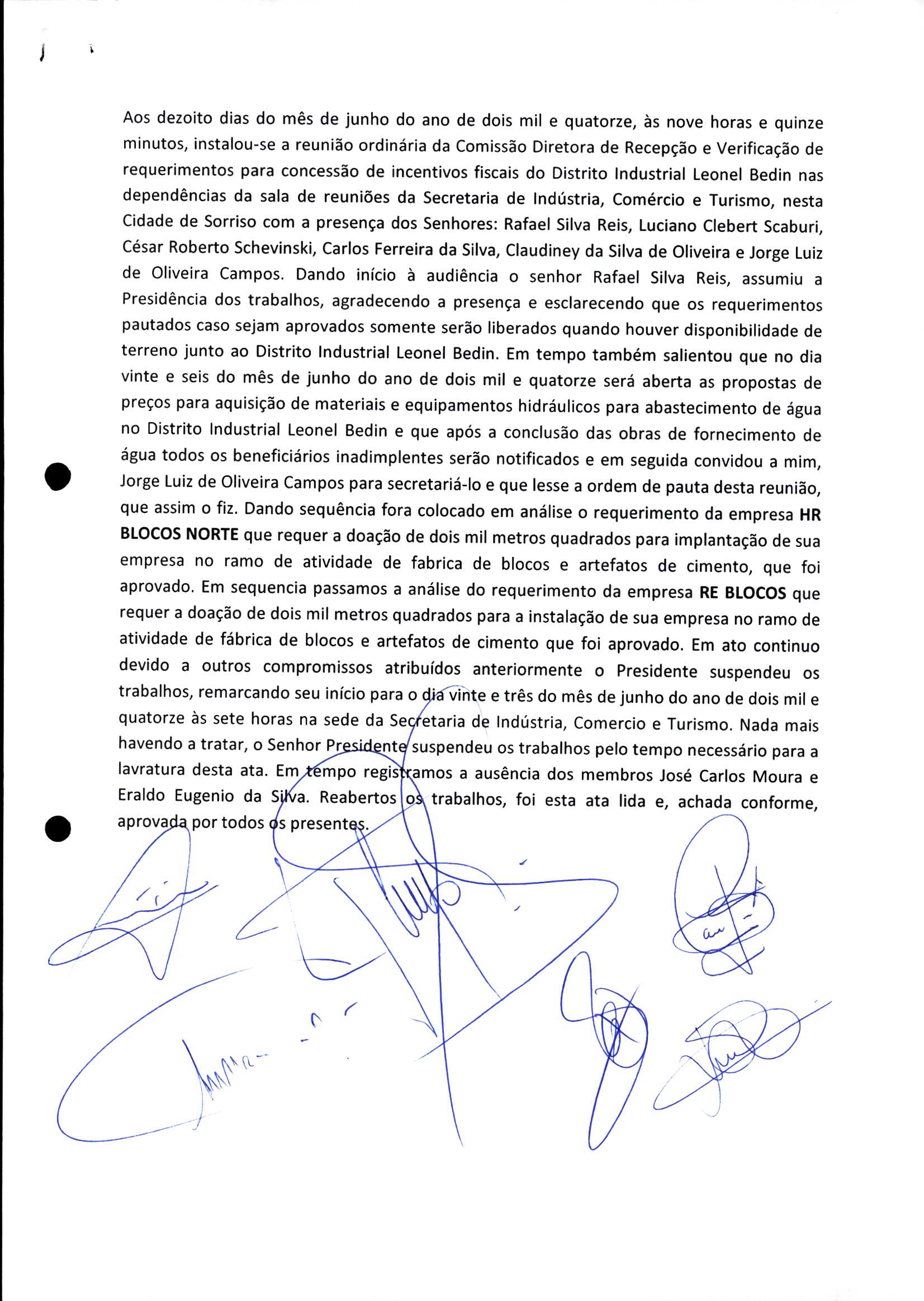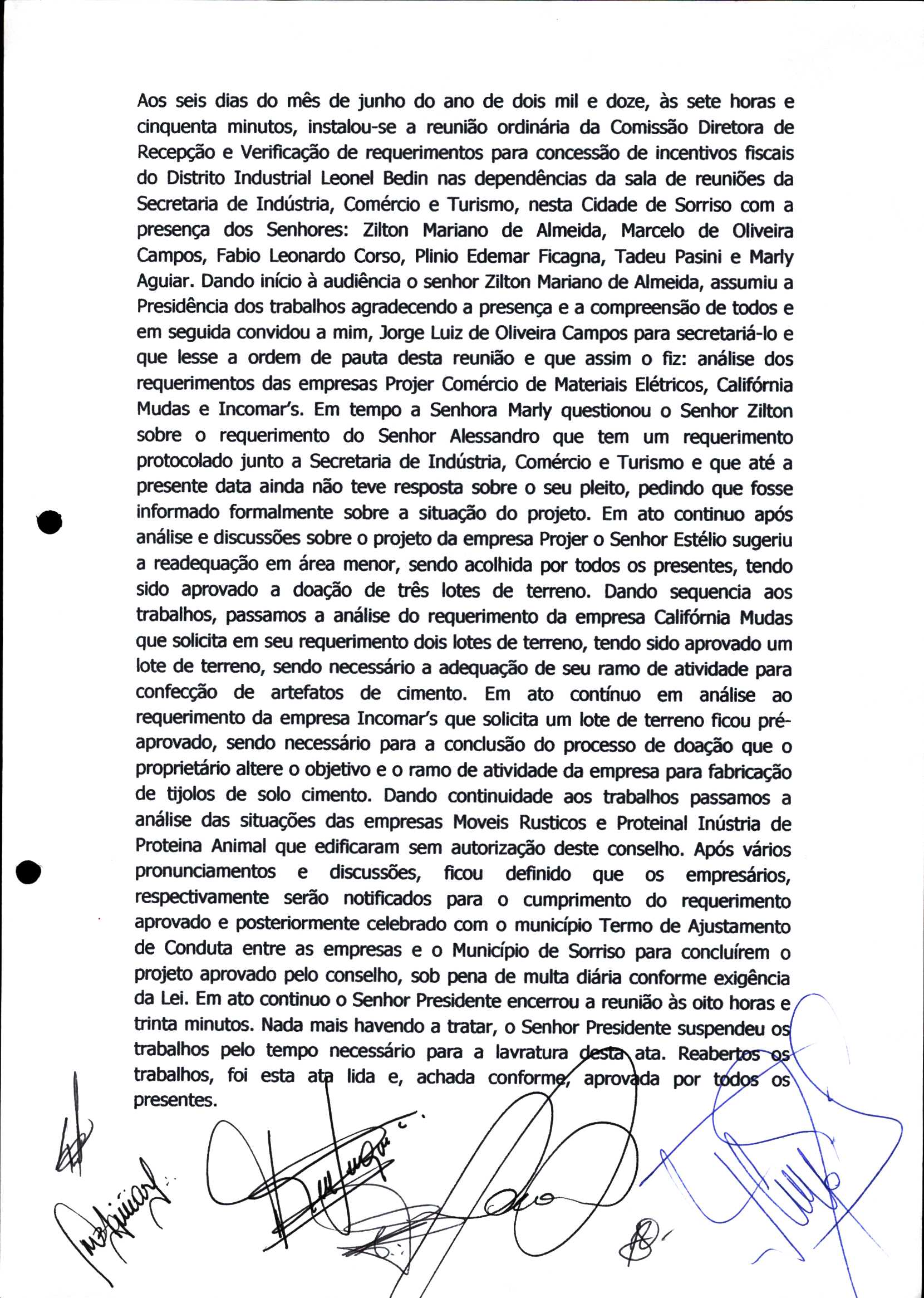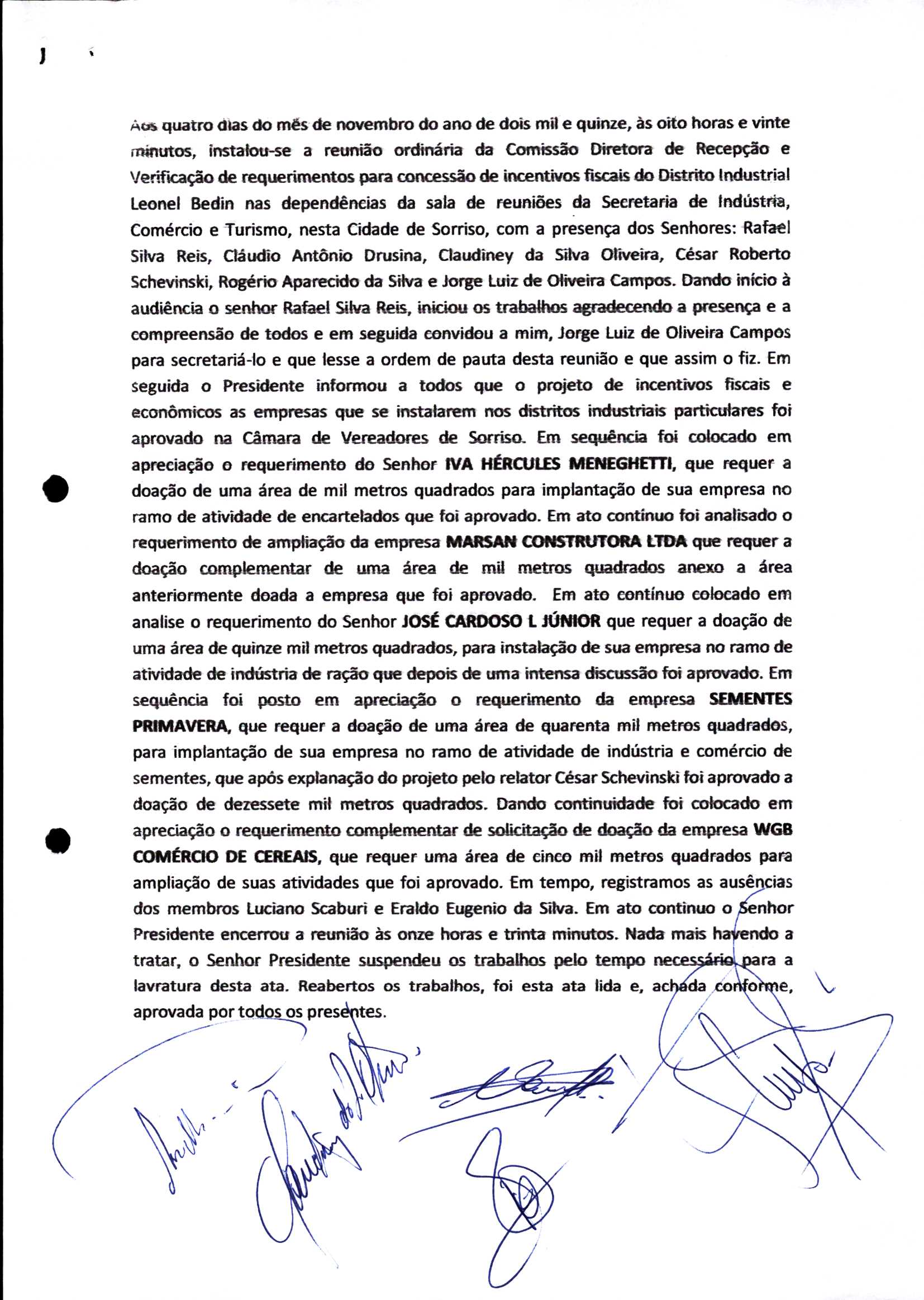 | Requerimento Nº 289/2023 | 04/10/2023 | requerendo as seguintes informações: a) Relação de todas as empresas contempladas com doação de imóveis junto ao Distrito Industrial Leonel Bedin I e II; b) Relação de todas as empresas instaladas no Distrito Industrial Leonel Bedin I que obtiveram autorização para escrituração dos imóveis, discriminadas por cumprimento do prazo e por antecipação de escritura; c) Cópias de todas as atas de reunião da Comissão Diretora de Verificação e de Recepção dos Requerimentos no período de 2017 a 2023; d) Justifica de não terem atendido a determinação do TCE/MT exarada no Acórdão nº 270/2021 – TP, vinculado ao processo nº 11.004-3/2018 explicita na alínea “h” para que o executivo apresentasse projeto de lei à Câmara Legislativa de Sorriso propondo alterações legislativas no sentido de adequar os textos normativos da Lei Municipal n.º 1.699/2008, com os ditames encartados na tese normativa e vinculativa veiculada pelo Acórdão n.º TCE/MT n.º 659/2006. |