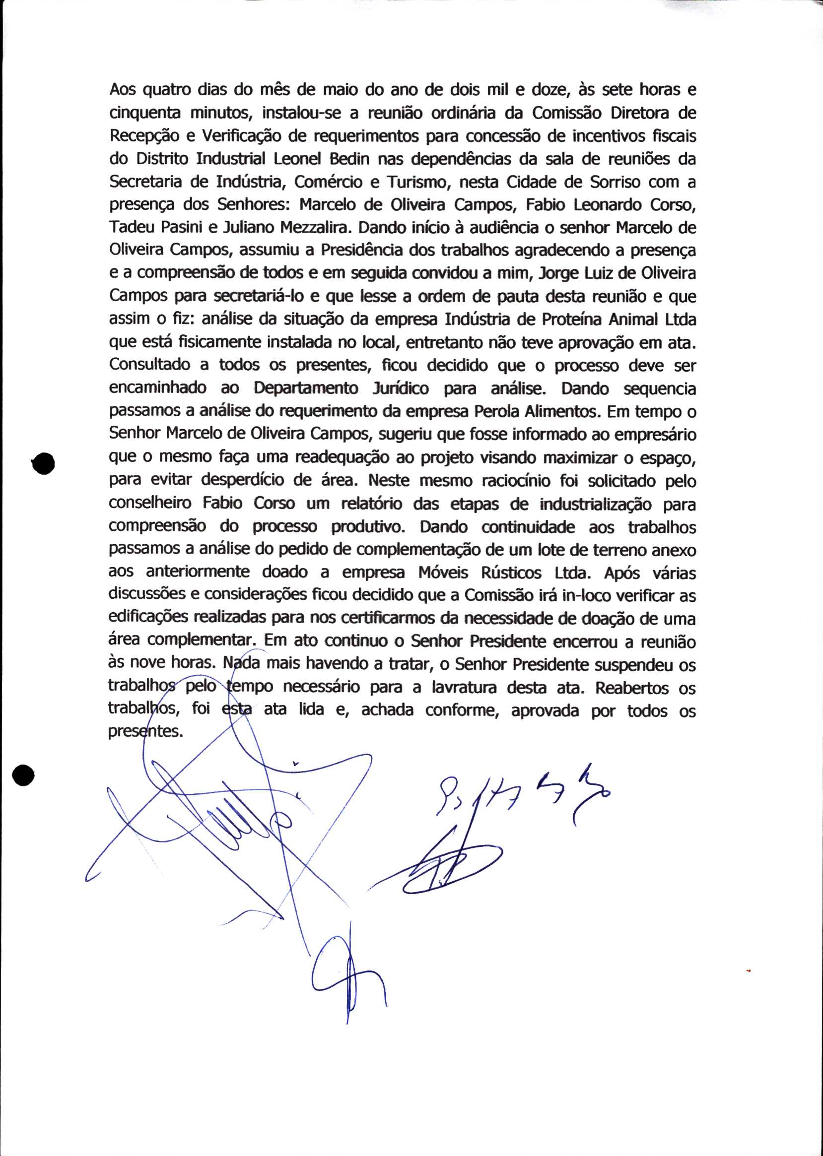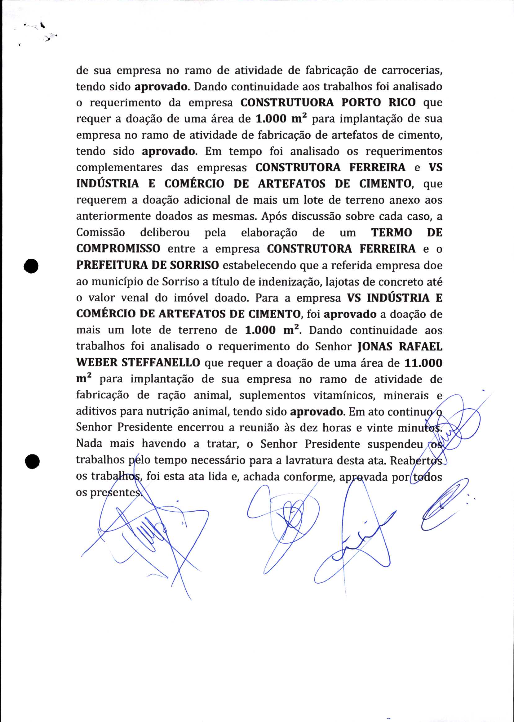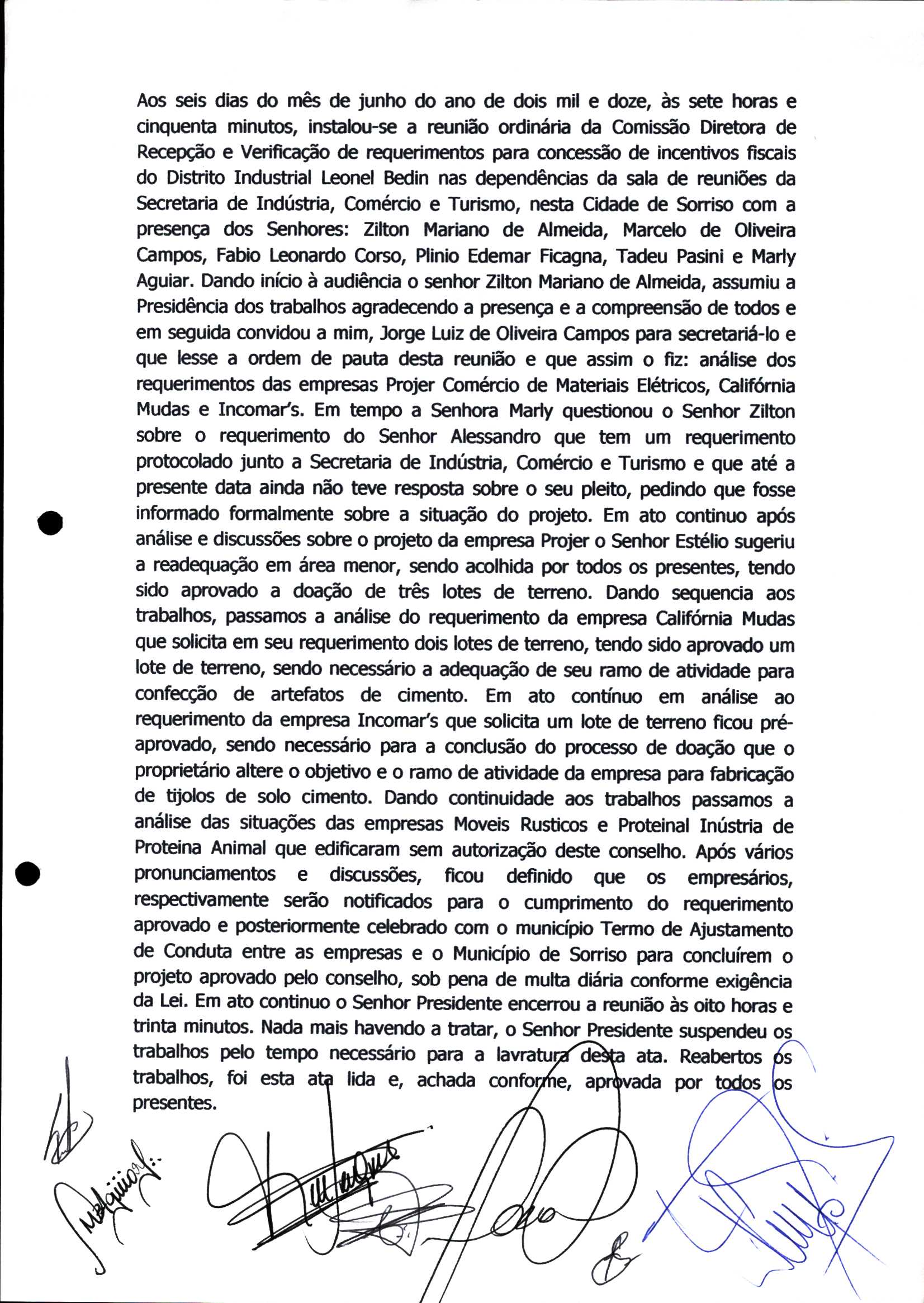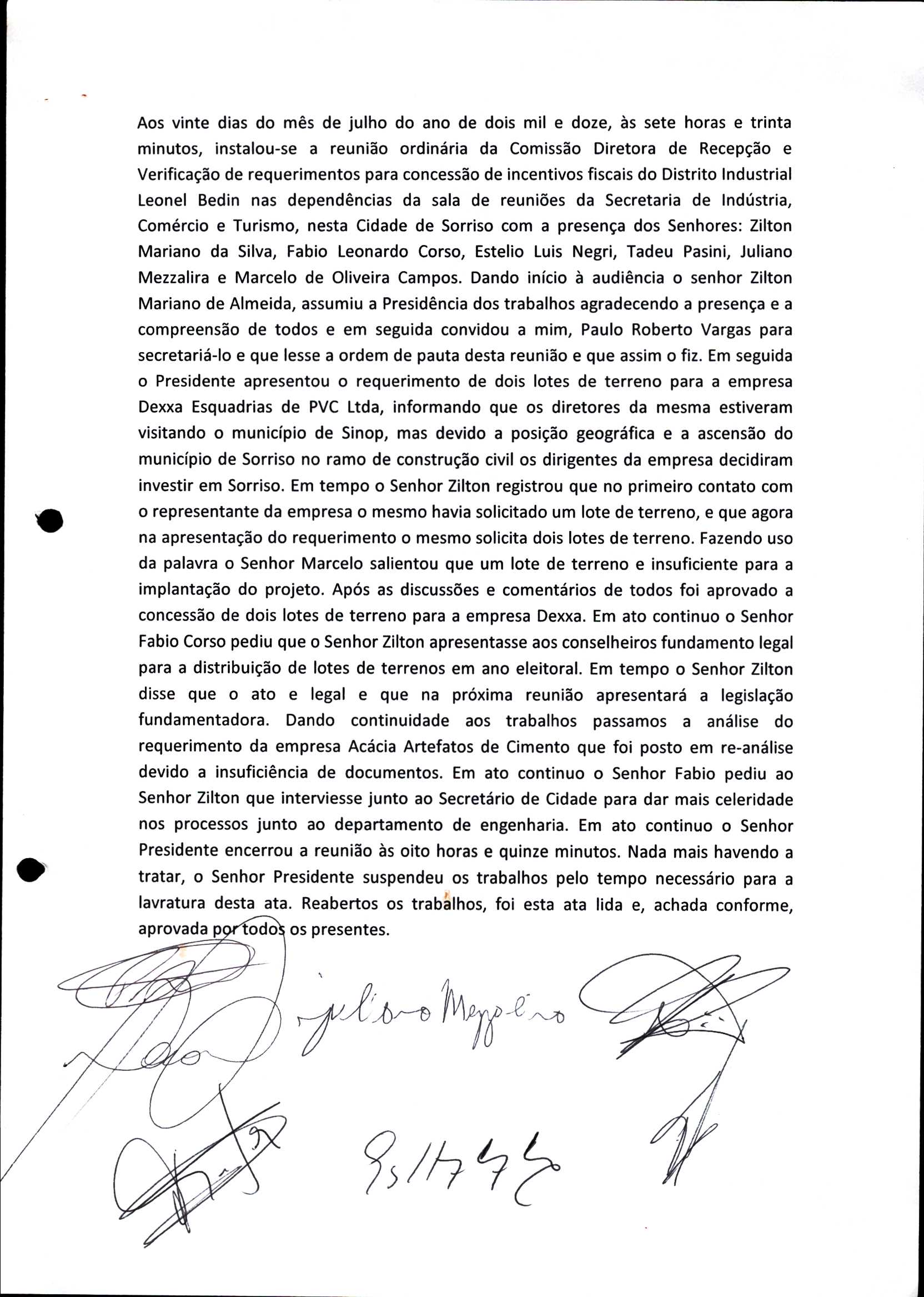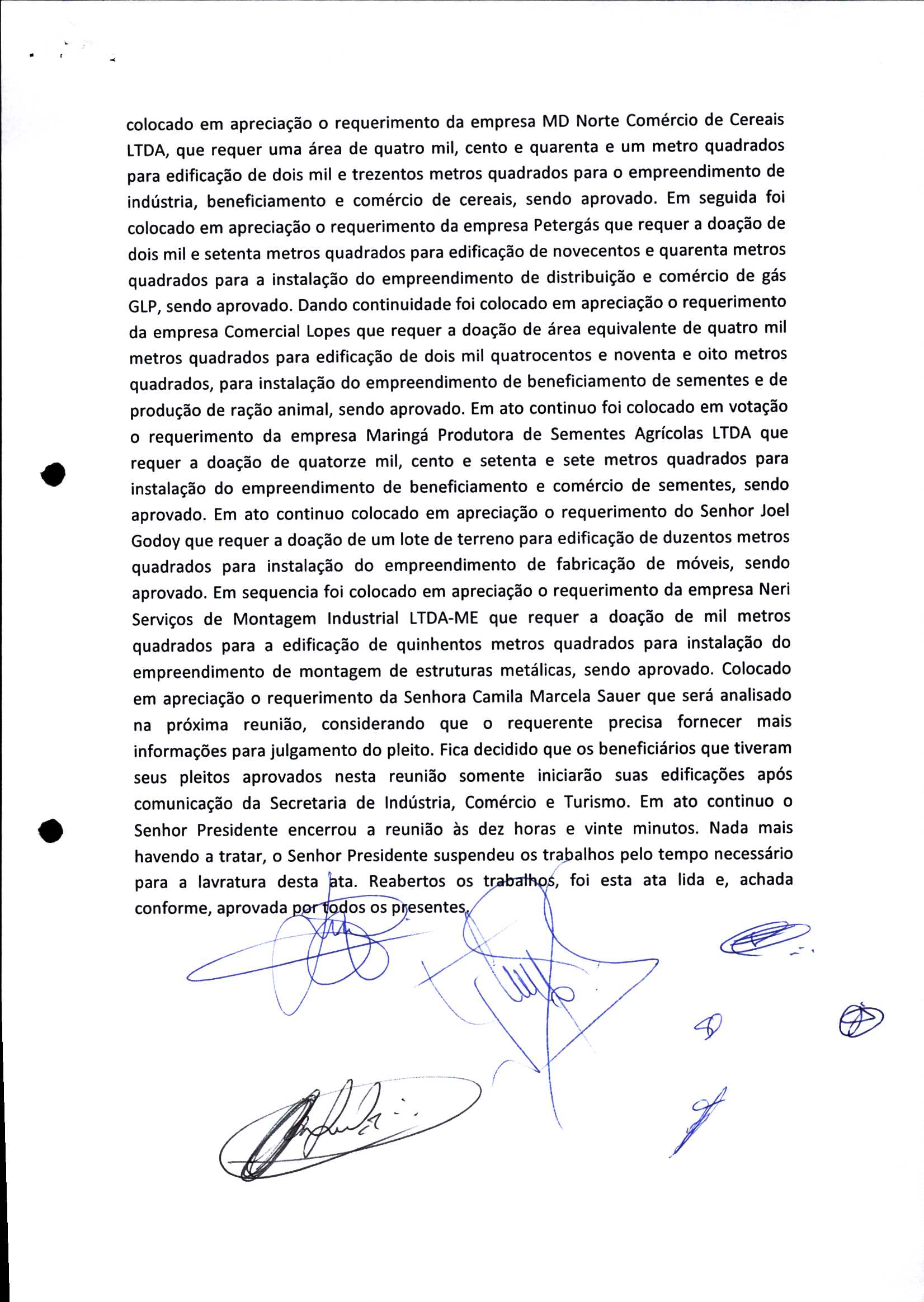 | Requerimento Nº 289/2023 | 04/10/2023 | requerendo as seguintes informações: a) Relação de todas as empresas contempladas com doação de imóveis junto ao Distrito Industrial Leonel Bedin I e II; b) Relação de todas as empresas instaladas no Distrito Industrial Leonel Bedin I que obtiveram autorização para escrituração dos imóveis, discriminadas por cumprimento do prazo e por antecipação de escritura; c) Cópias de todas as atas de reunião da Comissão Diretora de Verificação e de Recepção dos Requerimentos no período de 2017 a 2023; d) Justifica de não terem atendido a determinação do TCE/MT exarada no Acórdão nº 270/2021 – TP, vinculado ao processo nº 11.004-3/2018 explicita na alínea “h” para que o executivo apresentasse projeto de lei à Câmara Legislativa de Sorriso propondo alterações legislativas no sentido de adequar os textos normativos da Lei Municipal n.º 1.699/2008, com os ditames encartados na tese normativa e vinculativa veiculada pelo Acórdão n.º TCE/MT n.º 659/2006. |