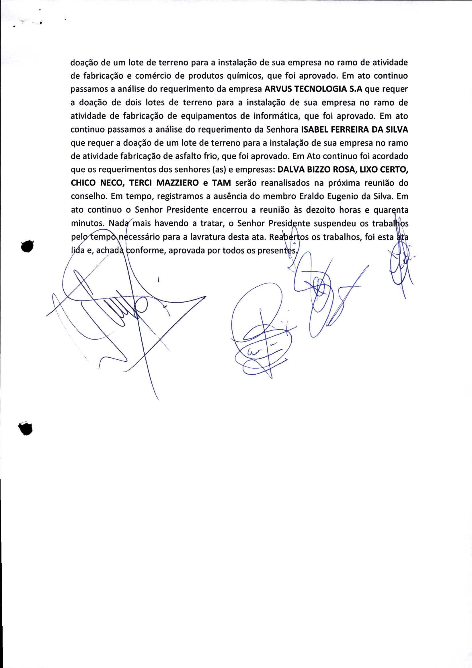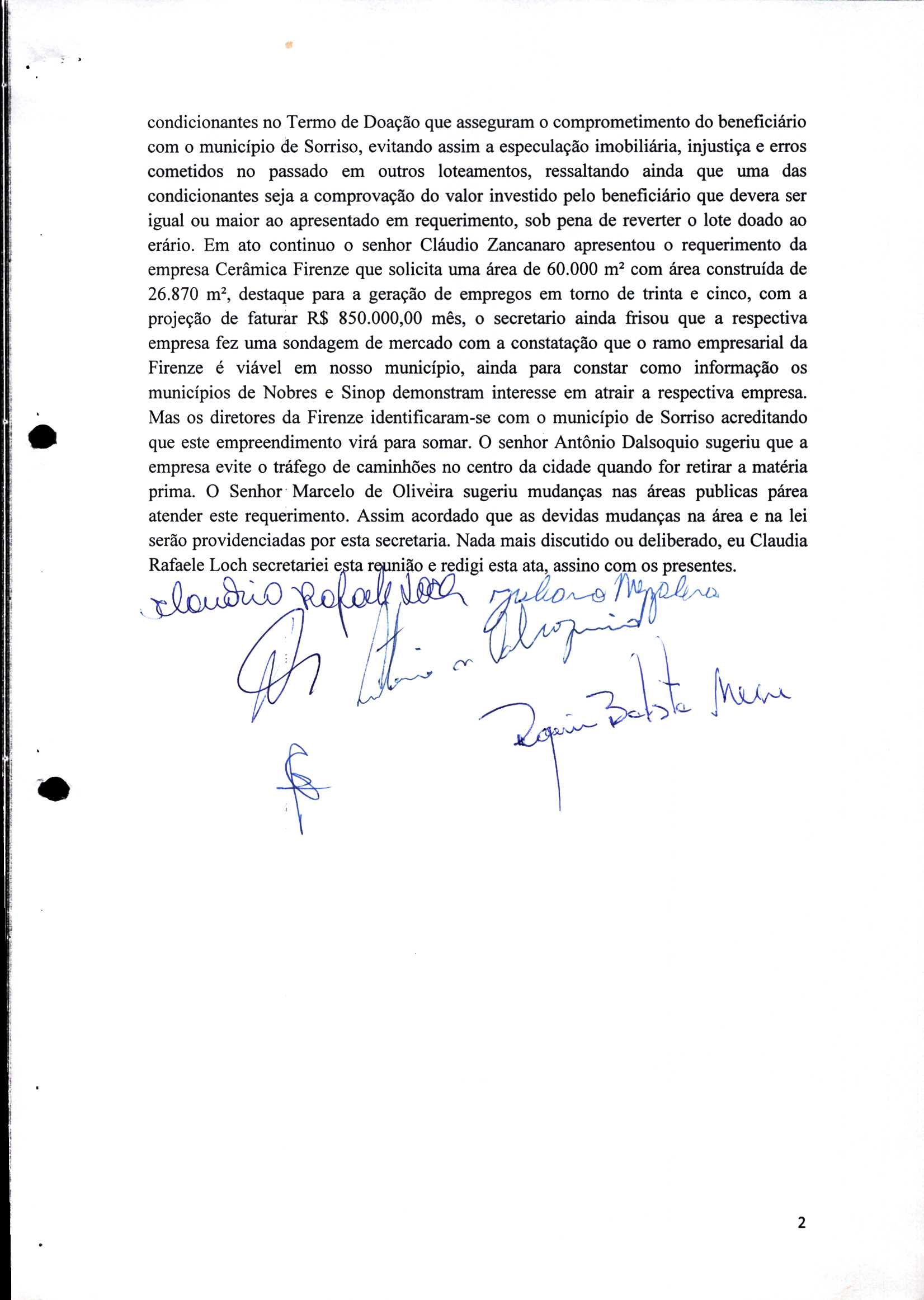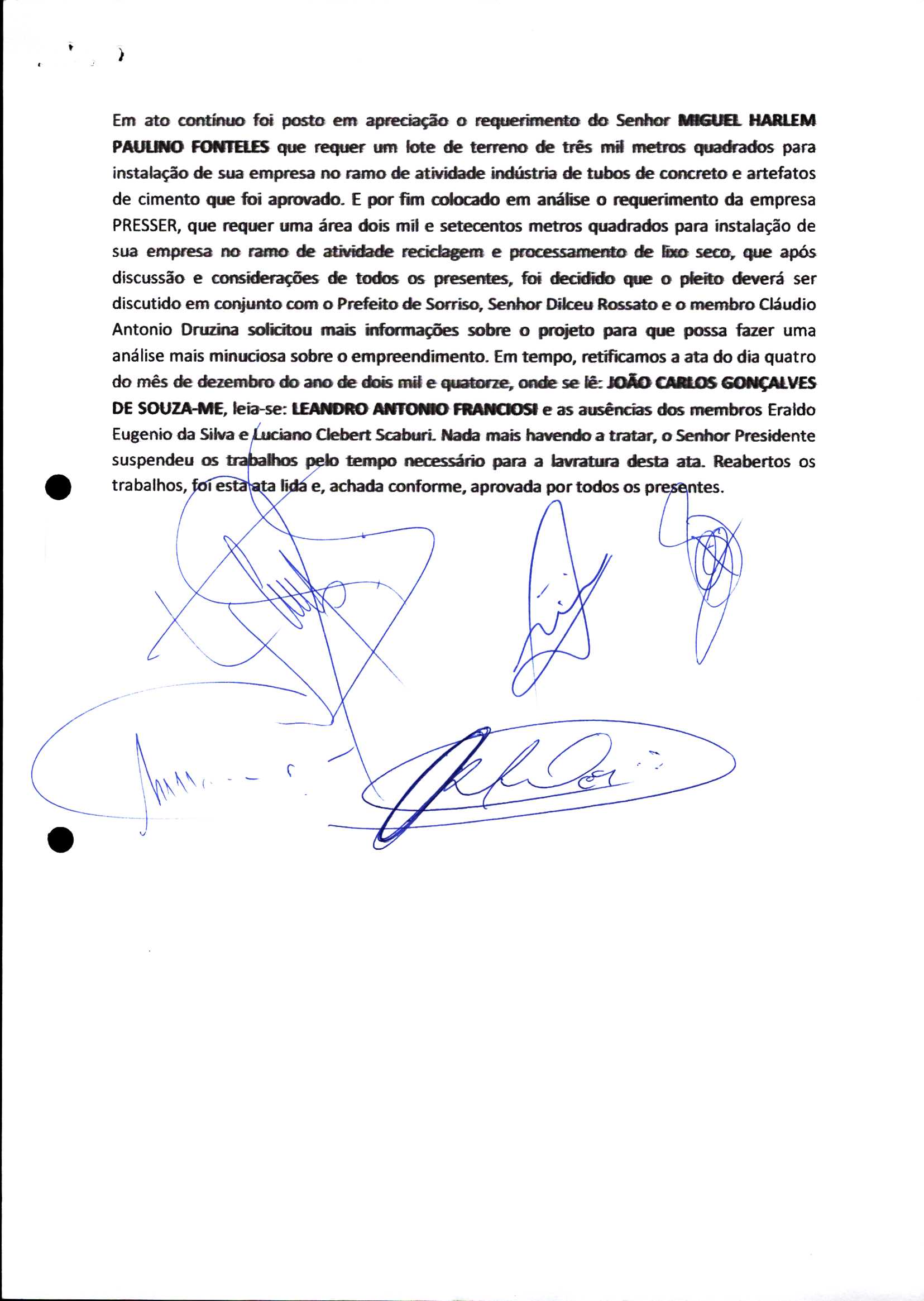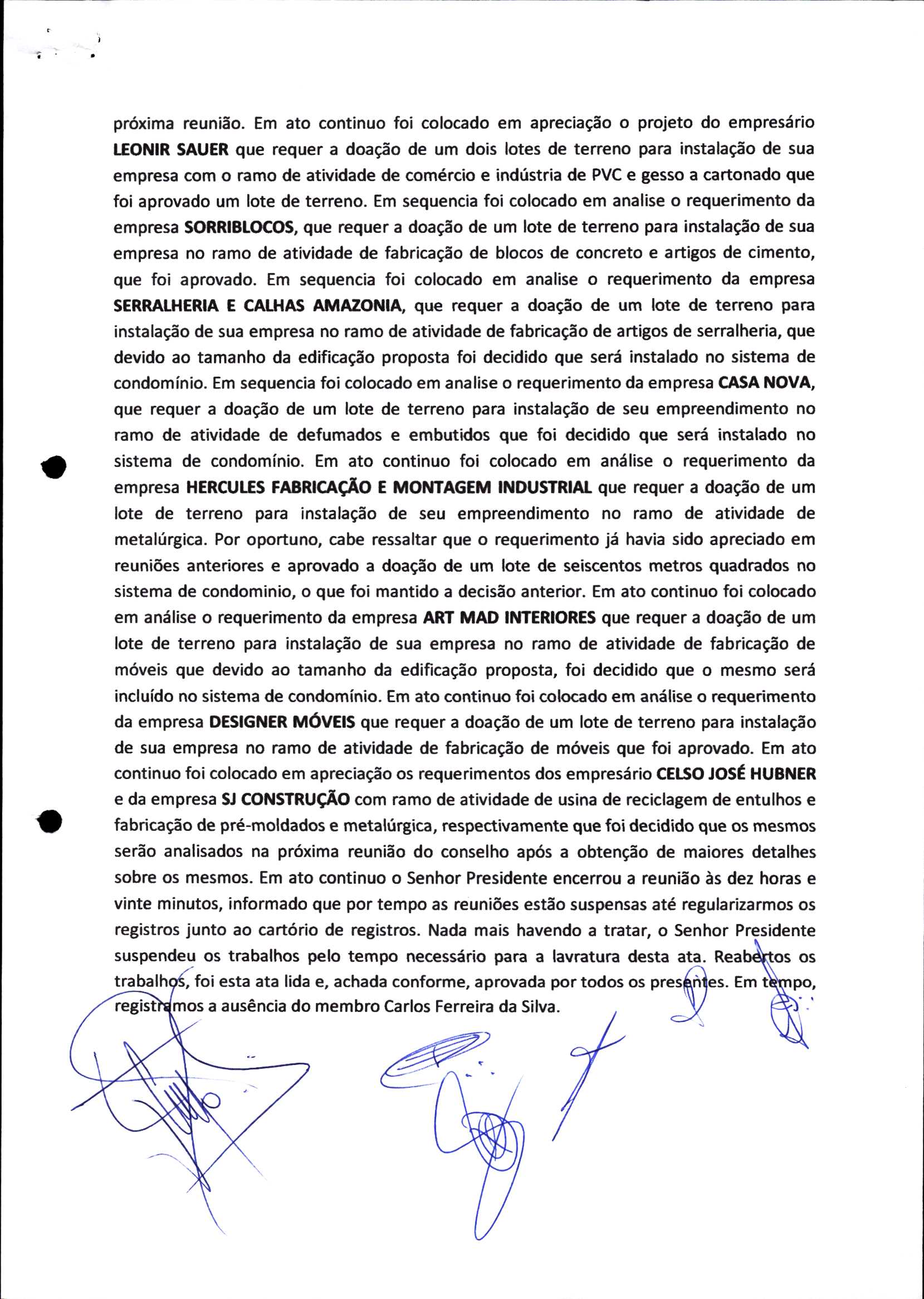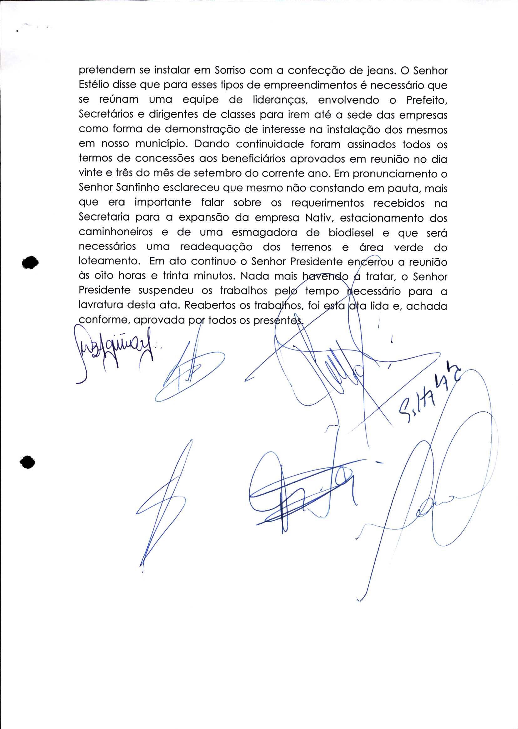 | Requerimento Nº 289/2023 | 04/10/2023 | requerendo as seguintes informações: a) Relação de todas as empresas contempladas com doação de imóveis junto ao Distrito Industrial Leonel Bedin I e II; b) Relação de todas as empresas instaladas no Distrito Industrial Leonel Bedin I que obtiveram autorização para escrituração dos imóveis, discriminadas por cumprimento do prazo e por antecipação de escritura; c) Cópias de todas as atas de reunião da Comissão Diretora de Verificação e de Recepção dos Requerimentos no período de 2017 a 2023; d) Justifica de não terem atendido a determinação do TCE/MT exarada no Acórdão nº 270/2021 – TP, vinculado ao processo nº 11.004-3/2018 explicita na alínea “h” para que o executivo apresentasse projeto de lei à Câmara Legislativa de Sorriso propondo alterações legislativas no sentido de adequar os textos normativos da Lei Municipal n.º 1.699/2008, com os ditames encartados na tese normativa e vinculativa veiculada pelo Acórdão n.º TCE/MT n.º 659/2006. |