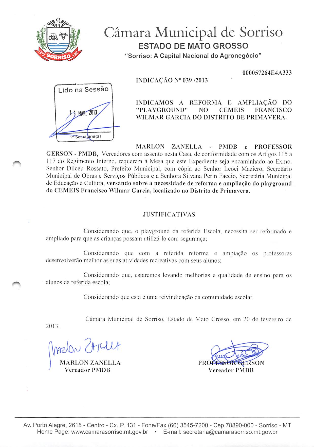 | Indicação Nº 39/2013 | .jpg | 23/05/2019 | 174 KB | |