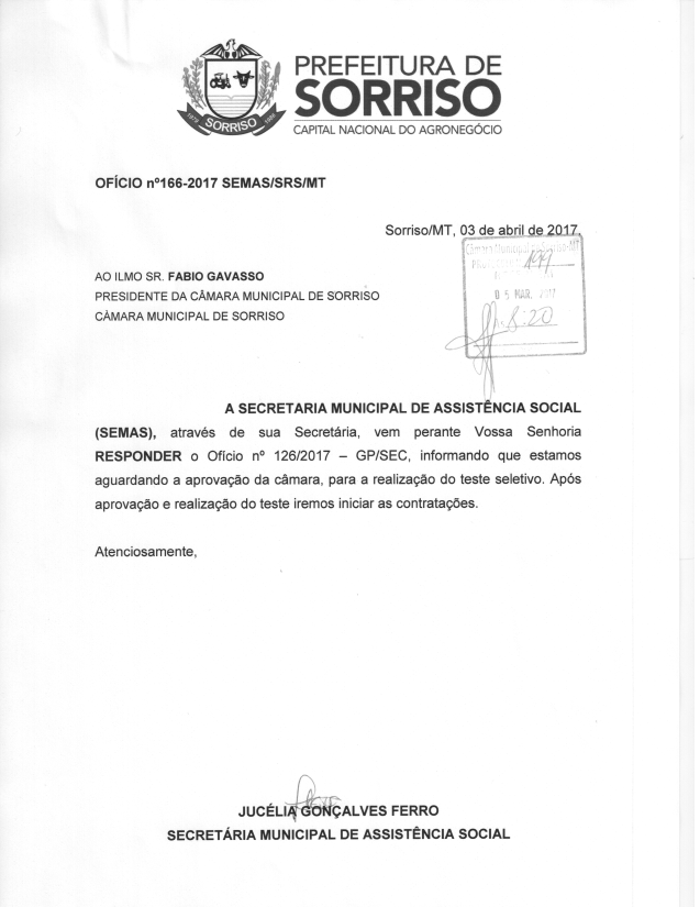 | Resposta Nº 2 à Indicação Nº 84/2017 | 05/04/2017 | Resposta à Indicação Nº 84/2017 - INDICAMOS A CONTRATAÇÃO OU REMANEJAMENTO DE UM ASSISTENTE SOCIAL EXCLUSIVO, PARA ATENDIMENTO DE FAMÍLIAS QUE VIVEM ABAIXO DA LINHA DA POBREZA E COM EXTREMA NECESSIDADE DE RECEBIMENTO DE ALIMENTOS. |